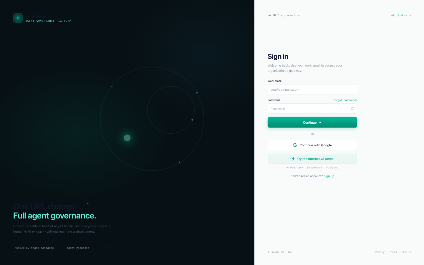 The ring animation never shipped correctly. The design spec calls for four governance phases ticking around the ring in sequence -- Protect, Enforce, Observe, Improve. What shipped is a continuous rotation. The ring spins. It doesn't tick through phases. The difference between "governance visualization" and "loading spinner" is the timing, and we skipped it.